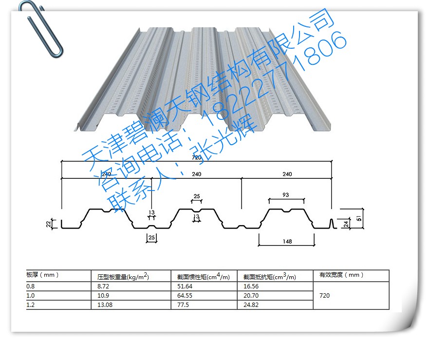 YX51-240-720压型钢板G240楼承板-天津碧澜天钢结构有限公司发布日期:2019-7-29